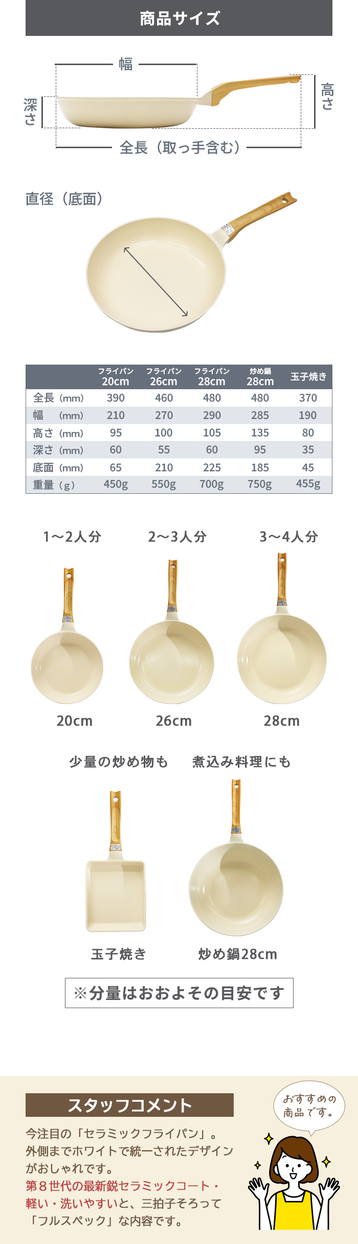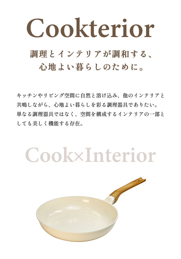 Cookterior(クックテリア)軽くて使いやすい IH・ガス対応 セラミックコートフライパン26cm アイボリー ウッド調取っ手 PFAS/PFOA不使用