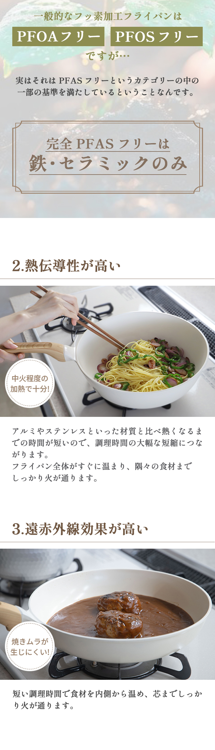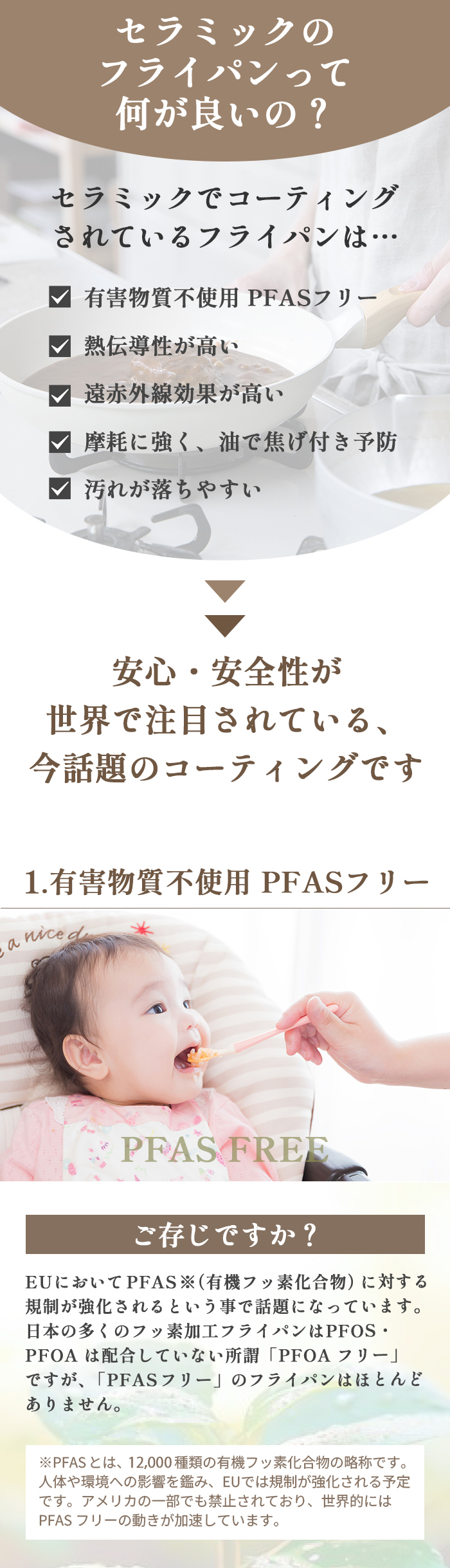 PFAS・PFOA不使用で安心してご使用いただけます。