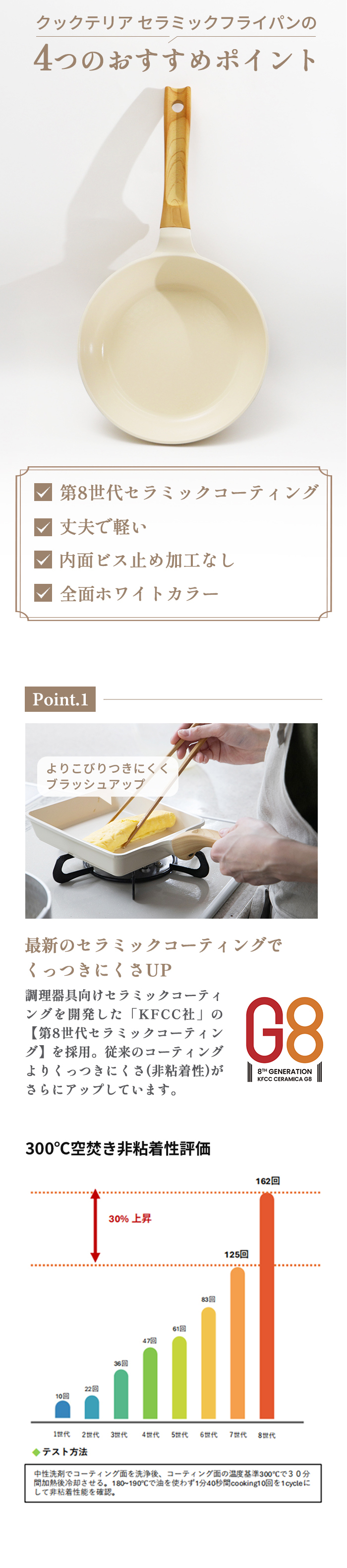 KFCC社第7世代のセラミック使用。従来の硬さはそのままに、こびりつきにくさを改善。