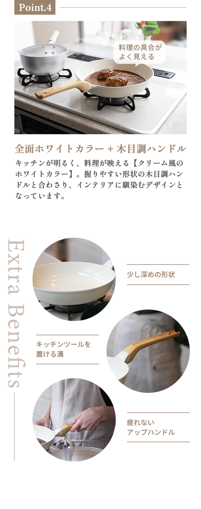 ■ホワイトカラーのボディにウッド調のハンドル。キッチンをおしゃれに演出します♪