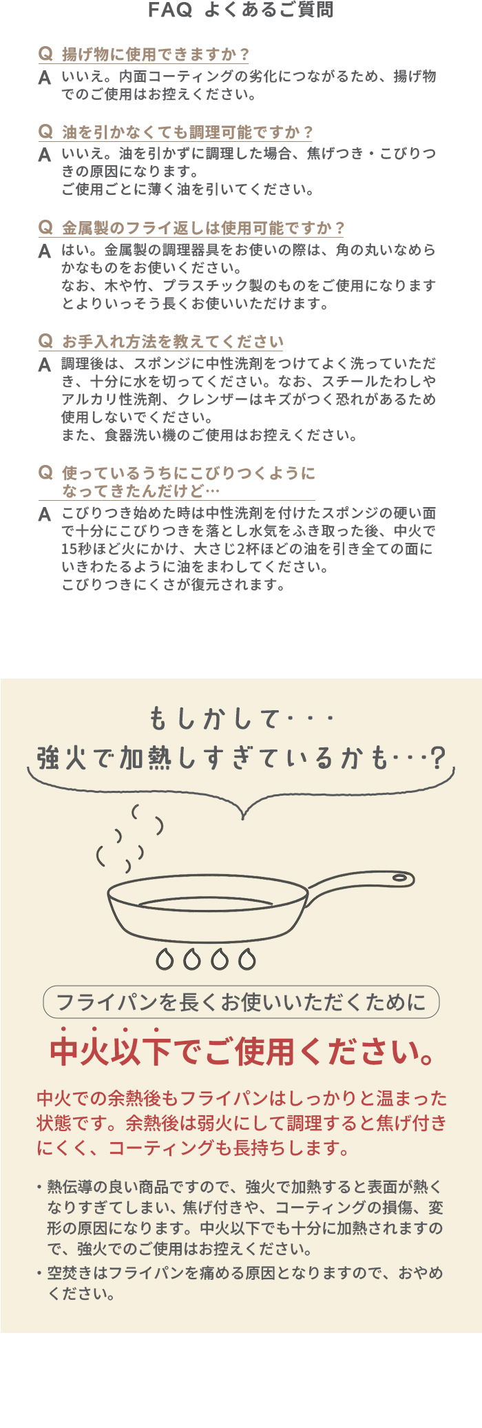 ガス火の場合をご使用の場合は、キッチンツールが落ちて燃えないようにご注意ください。