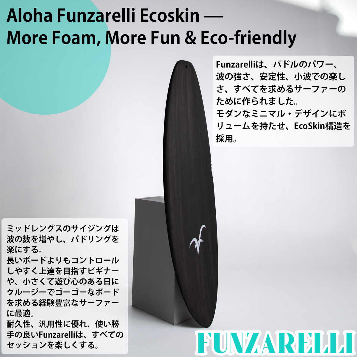Funzarelliは、パドルのパワー、波の強さ、安定性、小波での楽しさ、すべてを求めるサーファーのために作られました。
