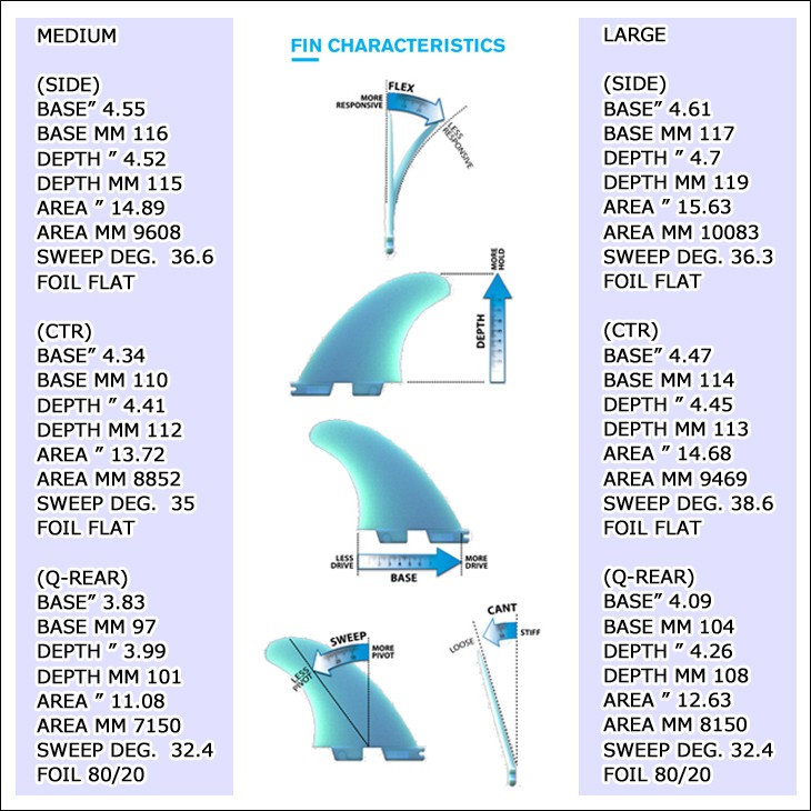 レイクしたサイドフィンにより特異なドライブを生み出し、 小さめのセンターフィンが素早いリリースを提供します。