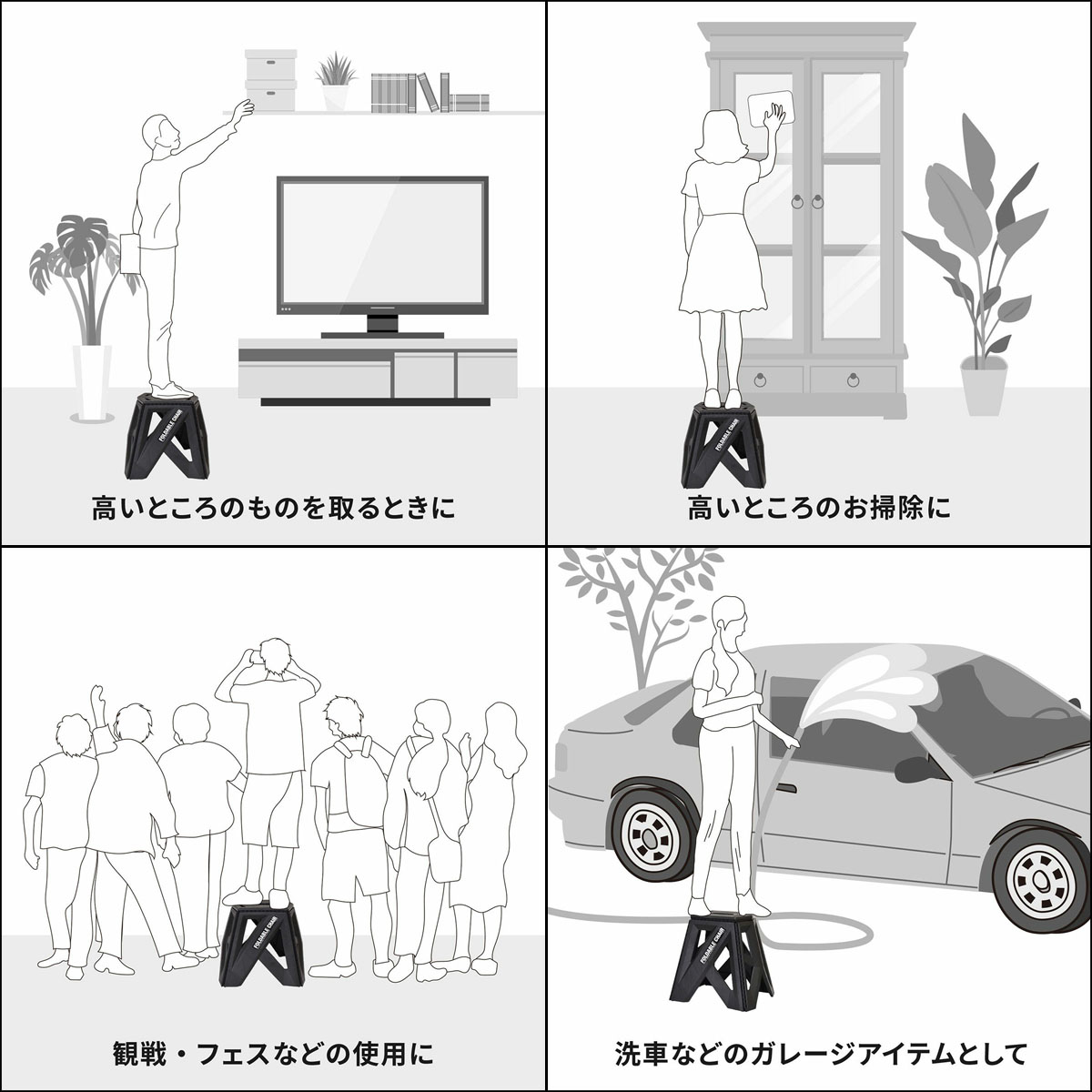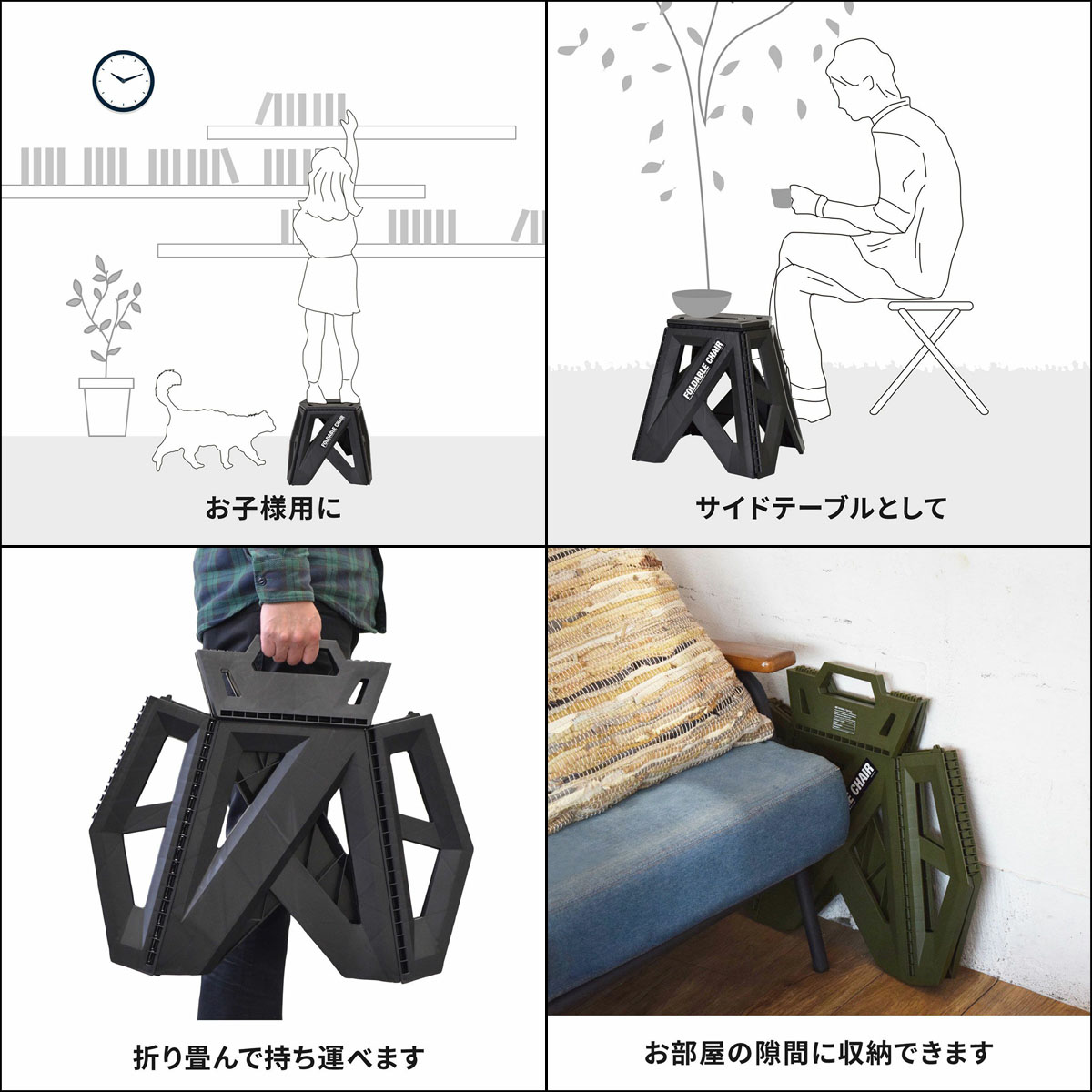 椅子や踏み台としてはもちろんですが、クーラーボックス置きにしたり、ちょっとしたテーブルとしてもご使用いただけます。
