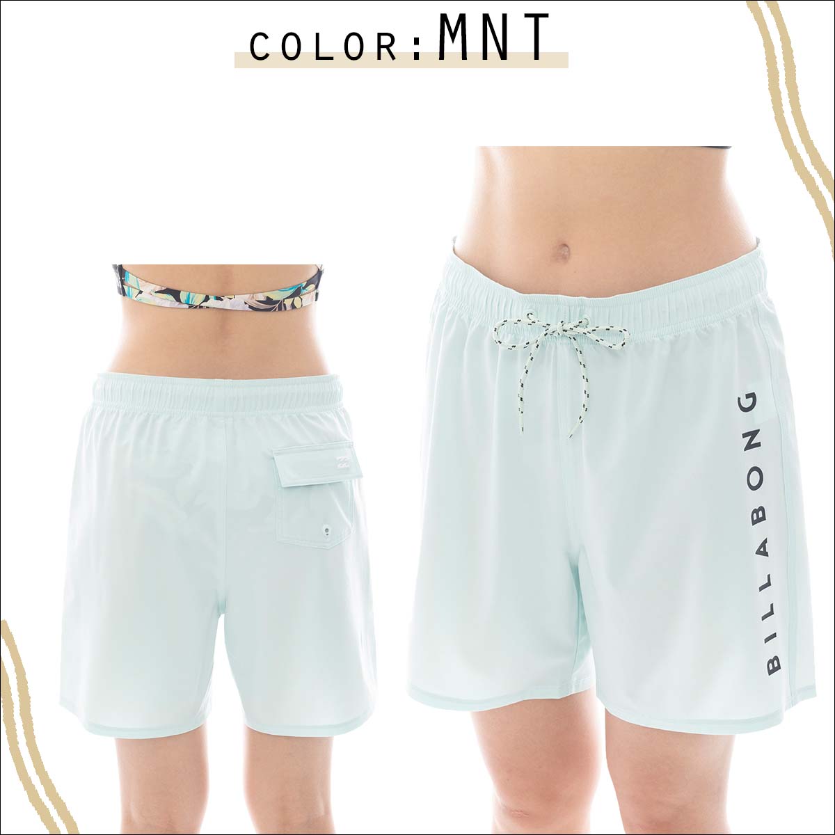 左脇にBILLABONGのロゴプリントをあしらったボードショーツ。