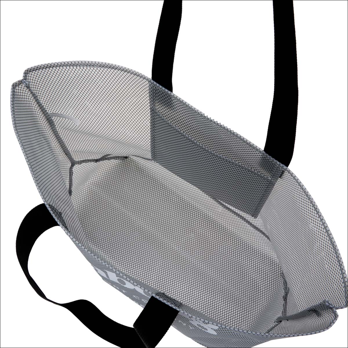 メッシュのラミネートのビニール素材を使用したビーチトートバッグ。