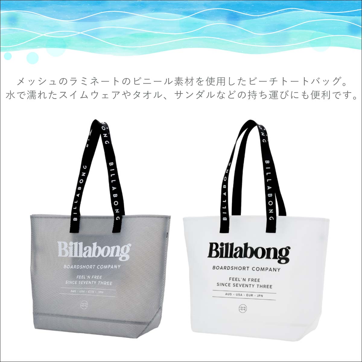 透け感のあるボディで、前面には大きくBILLABONGロゴをあしらいました。