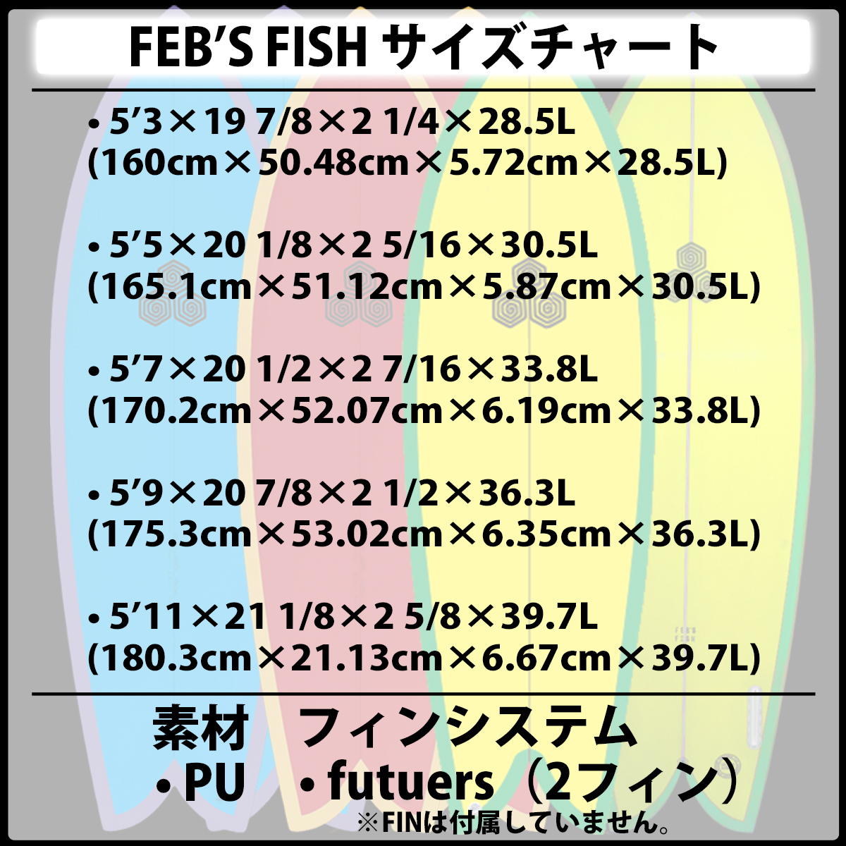 【 チャンネルアイランド FEB’S FISH PU futuers】 Feb’s Fishは、常に新鮮なライン取りを追求するマイケル・フェブラリーの好奇心に応えブリット・メリックがシェイプを手掛けたデザイン。 マイキーは全く新しいコンセプトを時には求める事もあれば、クラシックなデザインを新しい視線から見て、アップデートを求める事もある。 今回はトラディショナルなフィッシュアウトラインに現代的なエンジン(モダンなボトム形状、ロッカーなど)と繊細にフォイルされたレールを備え、ハイパフォーマンスな要素を兼ね備えているデザインが完成。
