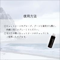 ○ウェットスーツやグローブ、ブーツを着用する際に、内側に均一にスプレーしてください。