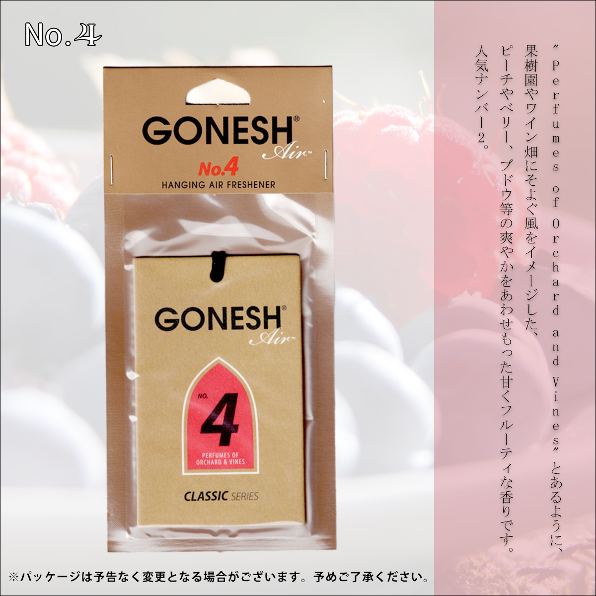 地球から沸き上がる自然の神秘、大きな力をイメージしたもので、Classicシリーズの特徴でもある何種類もの香りをブレンドさせてGONESH独特の強くて甘い香りを表現しています。