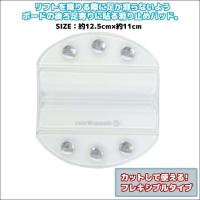 リフトを降りる際に足が滑らないよう、ボードの後ろ足寄りに貼る滑り止めパッド。