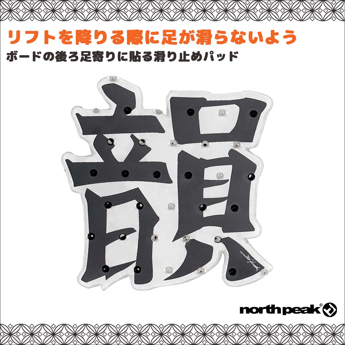 リフトを降りる際に足が滑らないよう、ボードの後ろ足寄りに貼る滑り止めパッド。