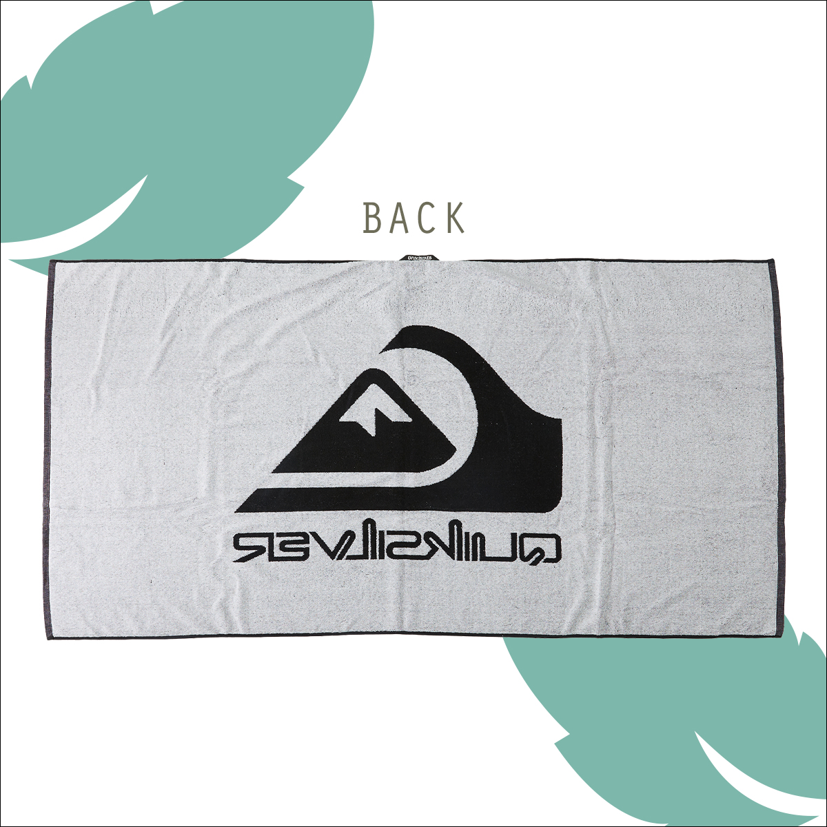 QUIKSILVERの山波ロゴとオムニロゴを大きくあしらった定番のビーチタオル。