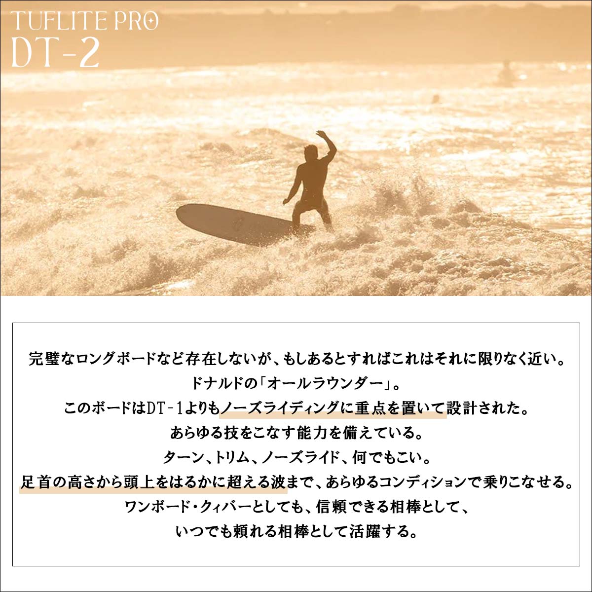 このボードはDT-1よりもノーズライディングに重点を置いて設計された。