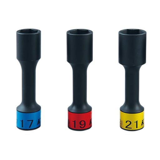 KTC 12.7sq.インパクトレンチ用ホイールナットソケットセット(ロング薄肉) 17,19,21mm 3ピース TBP4903は自動車ホイールナットの締め、緩めに使用する専用ソケットレンチです。