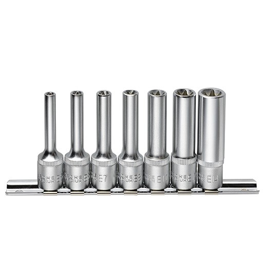 輸入車のテンションプーリーや国産車のスタッドボルト等の締緩に使用できるスターソケット(E型トルクス)のディープタイプです。