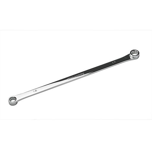 ロングメガネレンチ 14×17mmは、オフセット角が無いストレート構造のメガネレンチです。エンジンルーム内などの奥まった箇所へのアクセスも容易にできます。