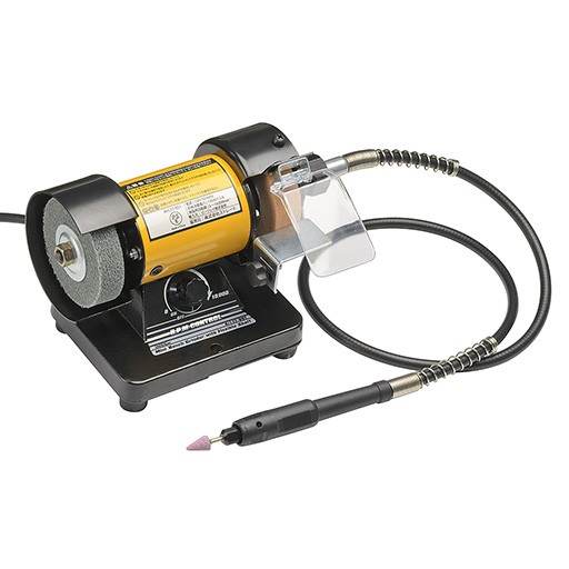 両頭グラインダーとハンドピース型マイクログラインダーを備え、研磨作業各種に最適な電動グラインダーです。回転数が本体スイッチ部分で調整できます。