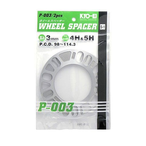 KYO-EI(協永産業) ホイールスペーサー 3mm(2枚) 4穴,5穴 P-003-2Pはホイールとハブの間に挟んで取り付け、オフセット量調整などに使用します。