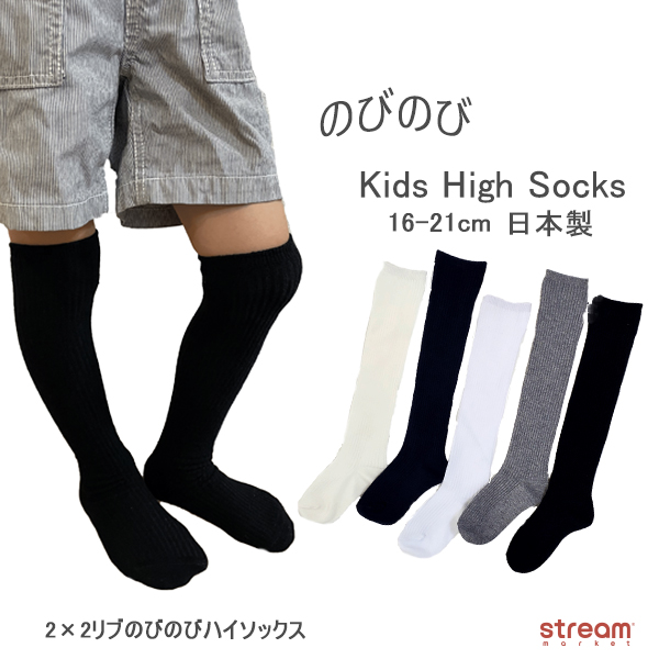 靴下 キッズ ハイソックス 男の子 女の子 白 黒 紺 グレー 日本製 伸びる のびのび 16-21cm 入園 入学 リブ 無地 16 17 18 19 20 21 16cm 17cm 18cm 19cm 20cm 21cm 16センチ 17センチ 18センチ 19センチ 20センチ 21センチ 幼稚園 保育園 小学生 小学校 ニーハイ 綿混 子供 子ども用 レッグウェア ソックス スクールソックス 白靴下