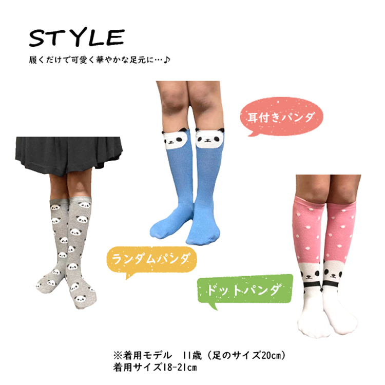 靴下 キッズ 女の子 ハイソックス 女 セット ジュニア パンダ 3足組 まとめ買い 可愛い 子供 小学生 大人 お揃い 18-21cm 23-25cm ゆうパケット送料無料