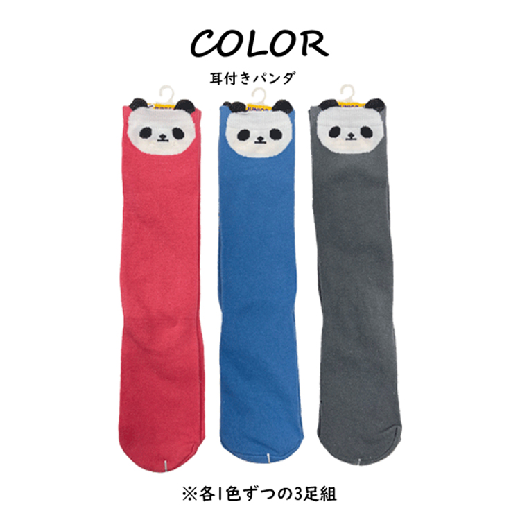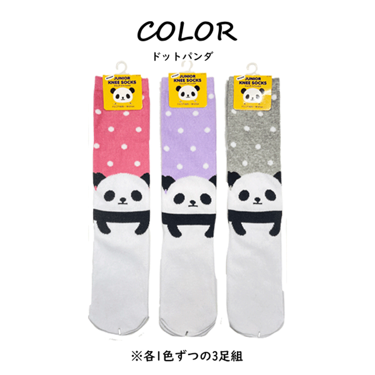 靴下 キッズ ハイソックス 子供 女の子 女 女子 ジュニア パンダ 3足組 セット まとめ買い 可愛い 小学生 大人 お揃い 18 19 20 21 22 23 24 25 cm センチ パンダグッズ
