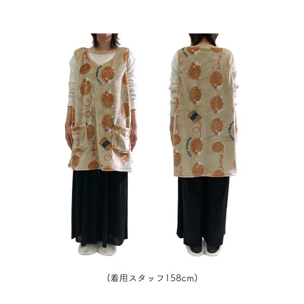 エプロン 暖かい 保育士 冬 おしゃれ 可愛い 着る毛布 脇ボタンあき ハリネズミ 猫 ポメラニアン チェック シマエナガ アニマル 柄 レディース ゆうパケット不可
