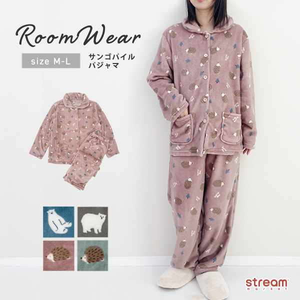 ルームウェア レディース パジャマ 前開き 上下セット 暖かい あったか もこもこ 冬 かわいい 部屋着 長袖 10分丈 ズボン パンツ シロクマ ハリネズミ グッズ アニマル 動物 柄 秋 冬用 プレゼント ギフト 誕生日 クリスマス 女性 30代 40代 50代 60代 70代 20代 10代サンゴパイル M-L ピンク ベージュ ブルー グレー ミント グリーン 婦人 入院 贈り物 防寒 冷え 寒さ 節電 対策