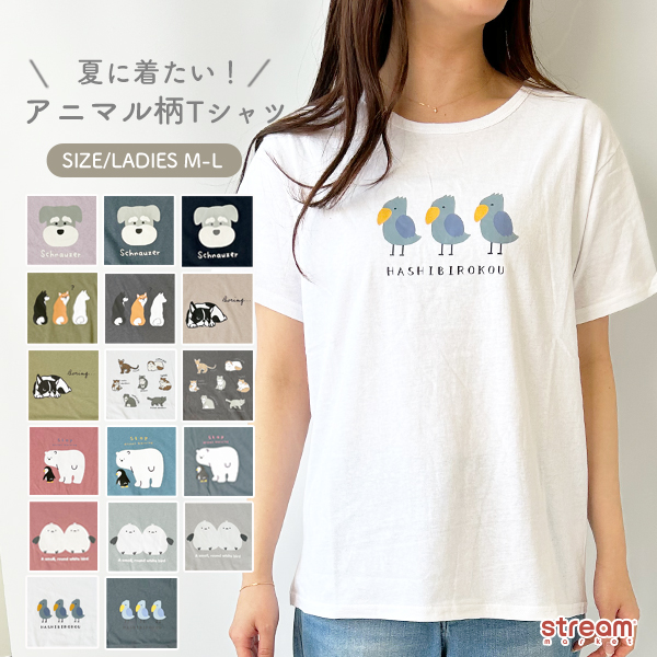 Tシャツ レディース シュナウザー 柴犬 ネコ フレンチブルドッグ シマエナガ ネコ ハシビロコウ アニマル柄 ウェア 半袖 プリントT M-L ゆうパケット3点まで可