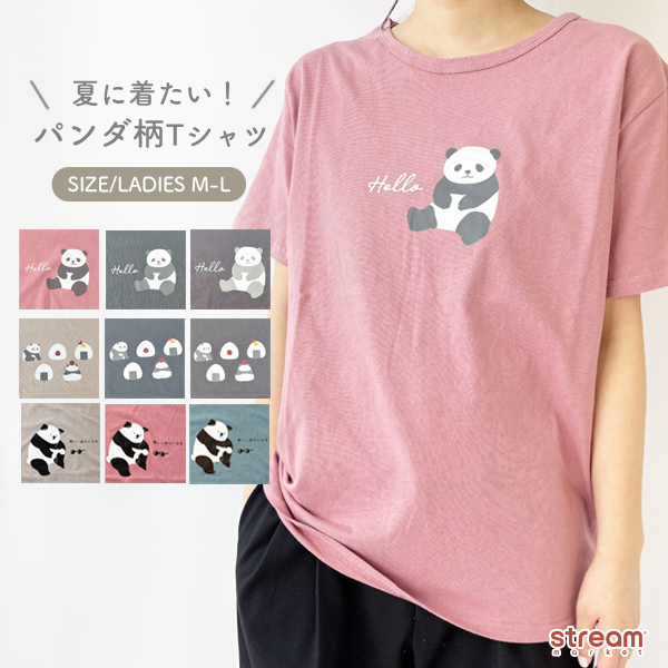 Tシャツ レディース 半袖 カットソー パンダ グッズ 可愛い プリントTシャツ 夏服 ゆったり 体型カバー おしゃれ カジュアル トップス 薄手 ウェア アニマル M-L サイズ 女性 大人 stream ストリームマーケット