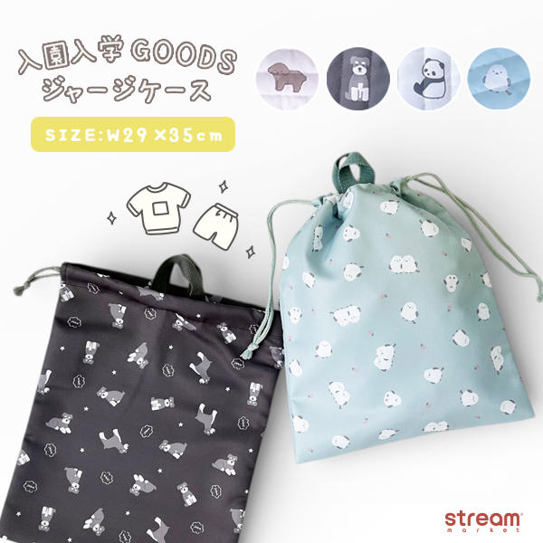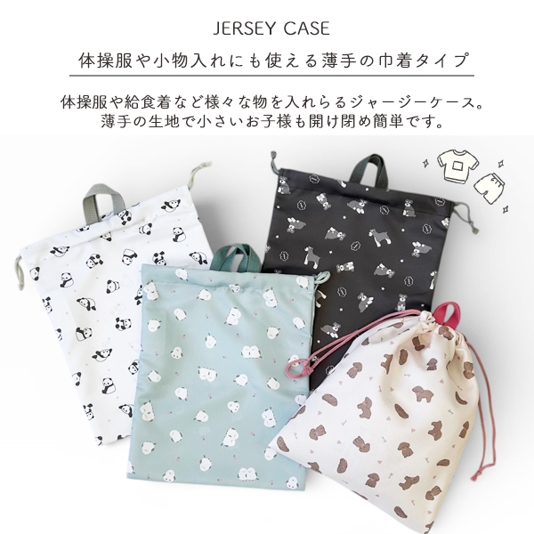 ジャージーケース 体操服入れ 体操着袋 給食着入れ 巾着袋 キッズ 子供 入園準備 入学準備 通園 通学 保育園 幼稚園 小学校 お着替え袋 体操服袋 サブバッグ ランドリーバッグ ネームタグ付き 名前タグ付き ポリエステル 軽量 アニマル柄 プードル シュナウザー シマエナガ パンダ かわいい 女の子