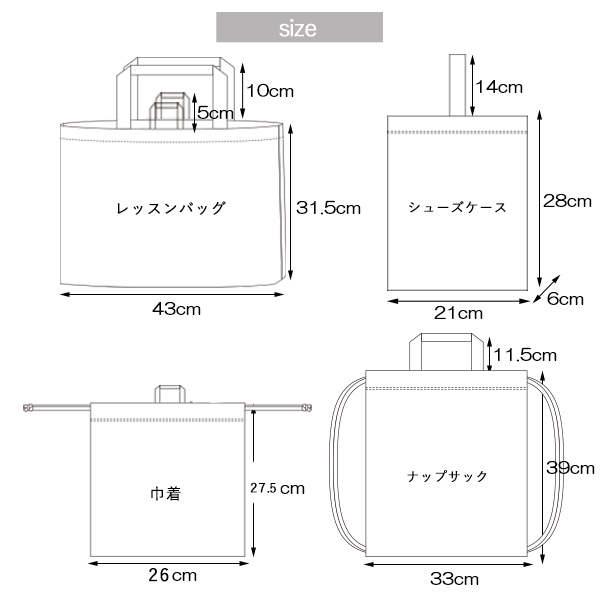 ・レッスンバッグ:約W43×H31cm