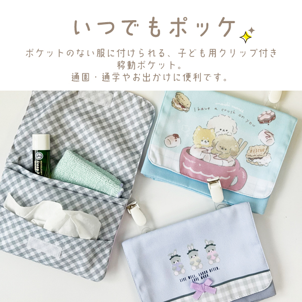 移動ポケット クリップ 男の子 女の子 付けポケット クリップポケット ポケットバッグ ポケットポーチ ポーチ 小物入れ 小学校 幼稚園 保育園 入園グッズ 入学グッズ 入園入学 通園 通学 シマエナガ ユニコーン クマ うさぎ ネコ リボン ハート チェック 柄 動物 アニマル 男子 女子 いつでもポッケ おしゃれ かわいい 付ポケット 爆買