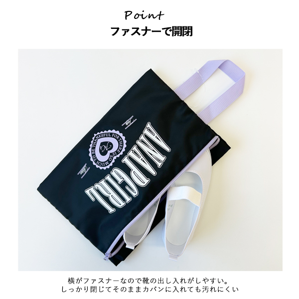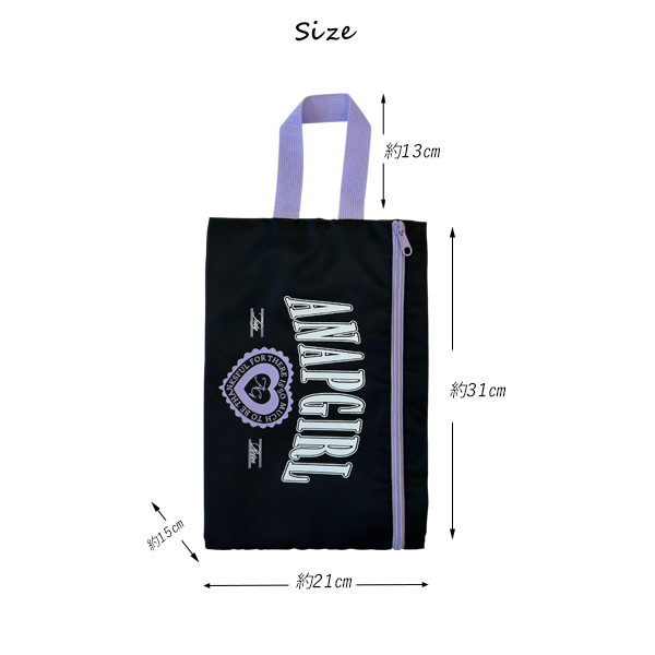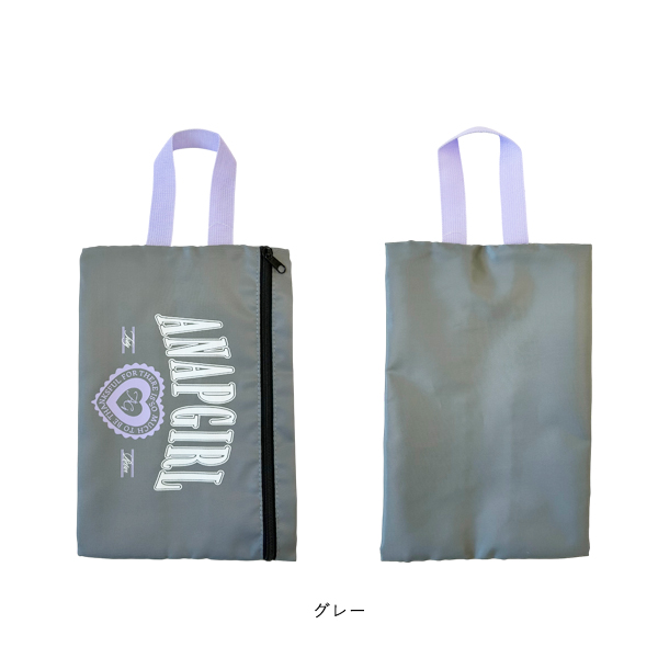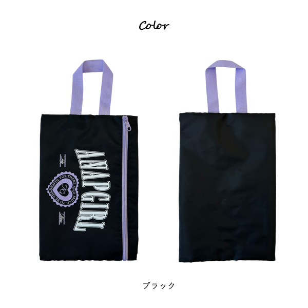 ANAP GIRL シューズケース 女の子 キッズ 上履き入れ 靴袋 お名前タグ付き ファスナー付き 通園 通学 小学生 幼稚園 ブラック グレー ゆうパケット2点まで可