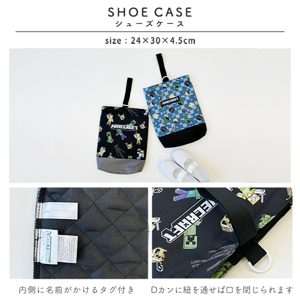 シューズケース 男の子 入学準備 マイクラ マインクラフト キルティング 通園 通学 上履き 上靴入れ 袋 小学生 保育園 幼稚園 ゆうパケット2点まで可