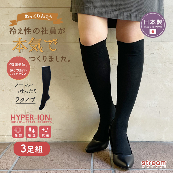 靴下 レディース 暖かい ハイソックス 黒 無地 セット 3足組 あったか 発熱 吸湿 抗菌 防寒 冬 秋冬 ハイパーイオン ぬっくりん プラス 制服 会社 ゴム無し ゆったり 23-25cm 23 24 25 cm センチ レッグウェア フットウェア 女性 婦人 くつ下 寒さ 冷え 対策 日本製 まとめ買い