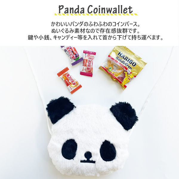 パンダ コインパース 財布 ポシェット 紐付き ぬいぐるみポシェット ショルダー バッグ 鞄 ぱんだ 入園 入学 パンダグッズ 雑貨 おしゃれ 子供用 キッズ 幼稚園 保育園 小学生 誕生日 クリスマス プレゼント 孫