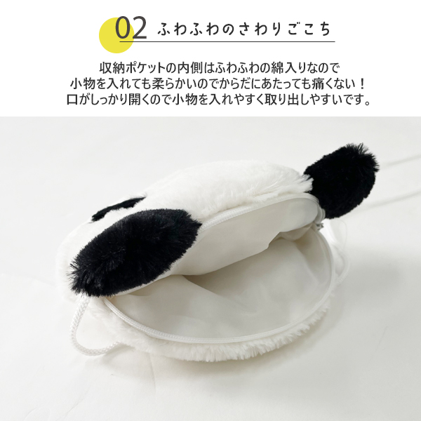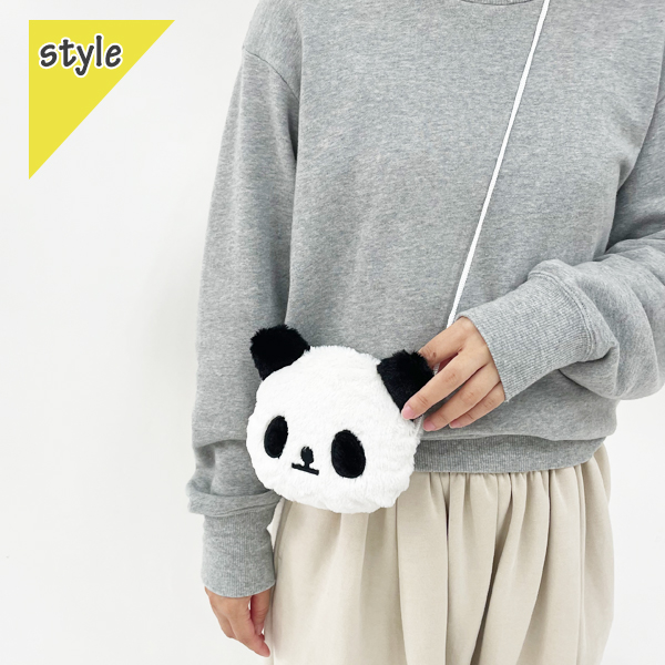パンダのふわふわのぬいぐるみポシェット。