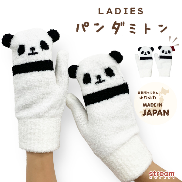 手袋 レディース ミトン 暖かい 防寒 おしゃれ 可愛い もこもこ あったか 冬 暖かい パンダ パンダグッズ 大人 日本製 高学年 小学生 クリスマス プレゼント ギフト