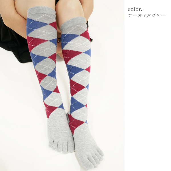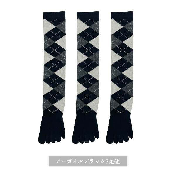 五本指靴下 5本指ソックスセット ハイソックス レディース おまかせ まとめ買い 3足組 暖かい おしゃれ あったか 足底サポート ずれにくい 秋 冬 ライン ボーダー アーガイル ドット 婦人 23-25cm 黒 ブラック 紺 グレー ネイビー 五指