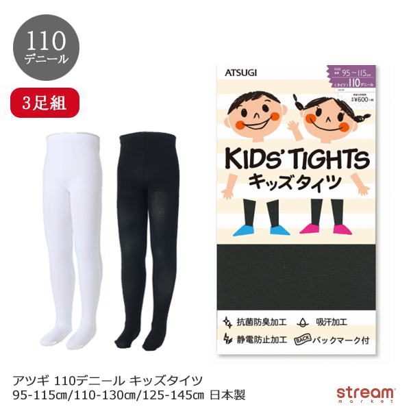 タイツ キッズ 白 黒 110デニール 男の子 女の子 子供 95-115cm 110-130cm 125-145cm アツギ 3足組 暖かい 子供 入園 入学 卒業 卒園 式 ゆうパケット送料無料