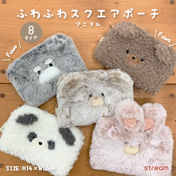 ポーチ 小物入れ 小さめ ふわふわ パンダ シュナウザー 柴犬 くま ウサギ 柄 おしゃれ 小物入れ スクエアポーチ 動物 可愛い もこもこ ゆうパケット3点まで可