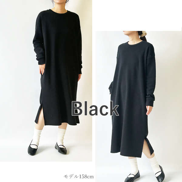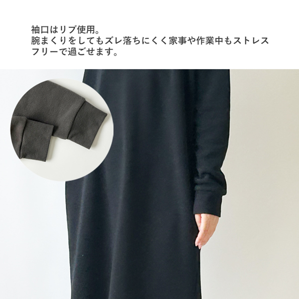 スウェットワンピース ルームウェア レディース 裏起毛 長袖 無地 ゆったり 体型カバー ミモレ丈 ポケット付き 秋 冬 暖か ゆうパケット不可