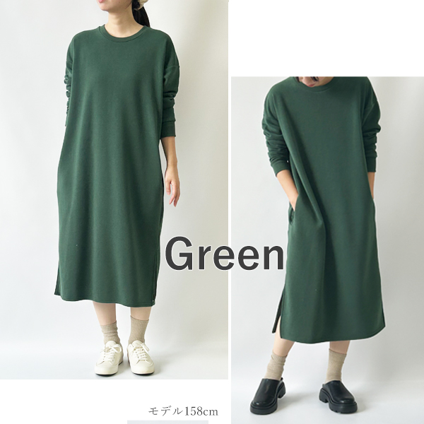 ルームウェア レディース スウェット ワンピース 冬 秋 裏起毛 部屋着 長袖 ポケット付き 無地 シンプル かわいい おしゃれ あたたかい 暖かい 温かい ゆったり 楽ちん リラックス ウェア 女性 婦人 30代 40代 50代 60代 20代 10代 ワンピ ルームワンピース 家着 服 M-L グリーン ブルー グレー オートミール ブラック 黒 青 緑