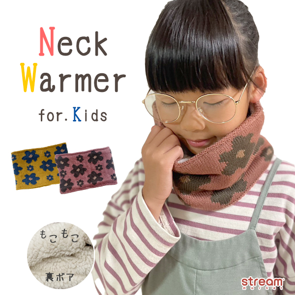 ネッックウォーマー キッズ 子ども 内ボア かわいい 花柄 もこもこ マフラー ストール 子ども用 冬 女の子 暖かい あったか 防寒 ゆうパケット1点まで可