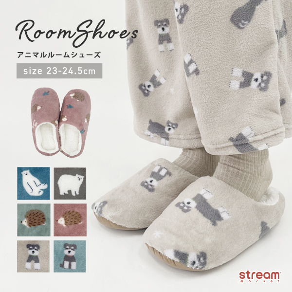 ルームシューズ もこもこ レディース 冬 スリッパ 暖かい かわいい おしゃれ シュナウザー ハリネズミ シロクマ グッズ プレゼント 23-24.5cm ゆうパケット不可