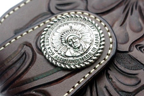 アンチモニー合金製のオリジナルコンチョです。熟練職人が原形から製作しました。細工が細かく中央のロゴが立体的に浮かび上がる高級感のある手の込んだデザインです。裏はスクリュー(ネジ式)になり、真鍮製のネジが付属致します。2.5mmサイズの六角レンチで簡単に交換可能です。