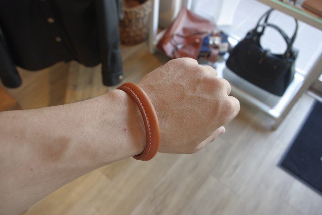 長さ24センチの金属の棒を全てオリジナルレザーで包み込みました。自由に曲がるので、男女問わずお使い頂けます。