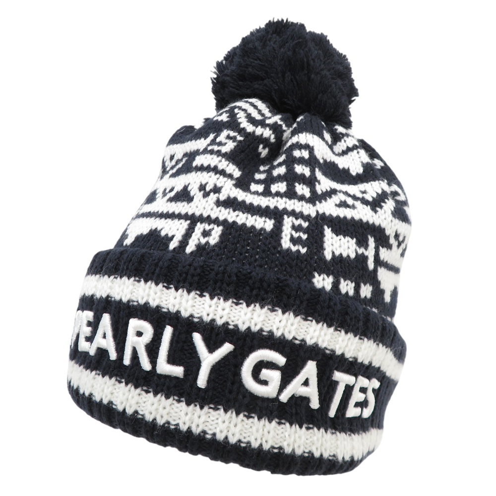 PEARLY GATES パーリーゲイツ 2023年モデル ニット帽 総柄 ネイビー系 FR ゴルフウェア
