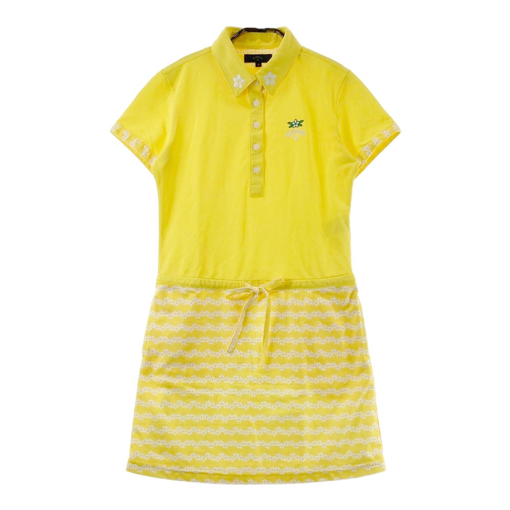 CALLAWAY キャロウェイ 裏地付 半袖ポロワンピース 花柄 イエロー系 M ゴルフウェア レディース